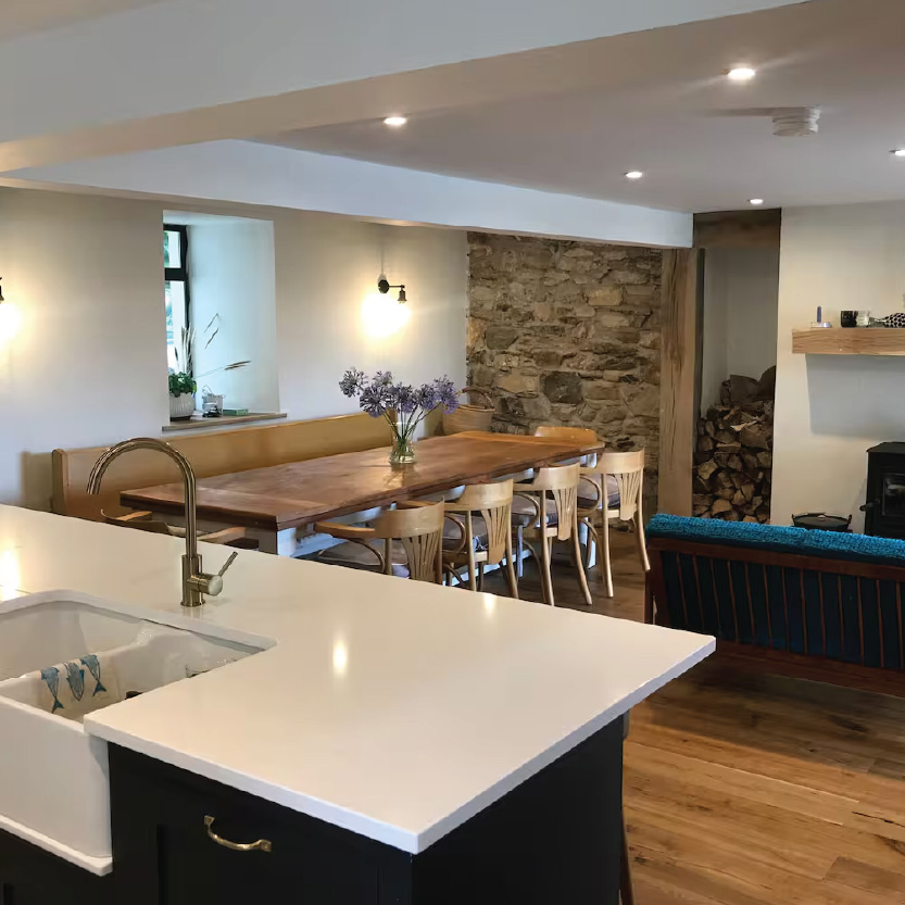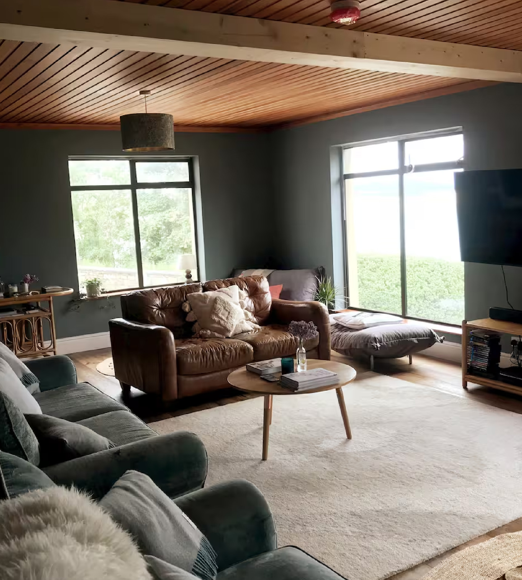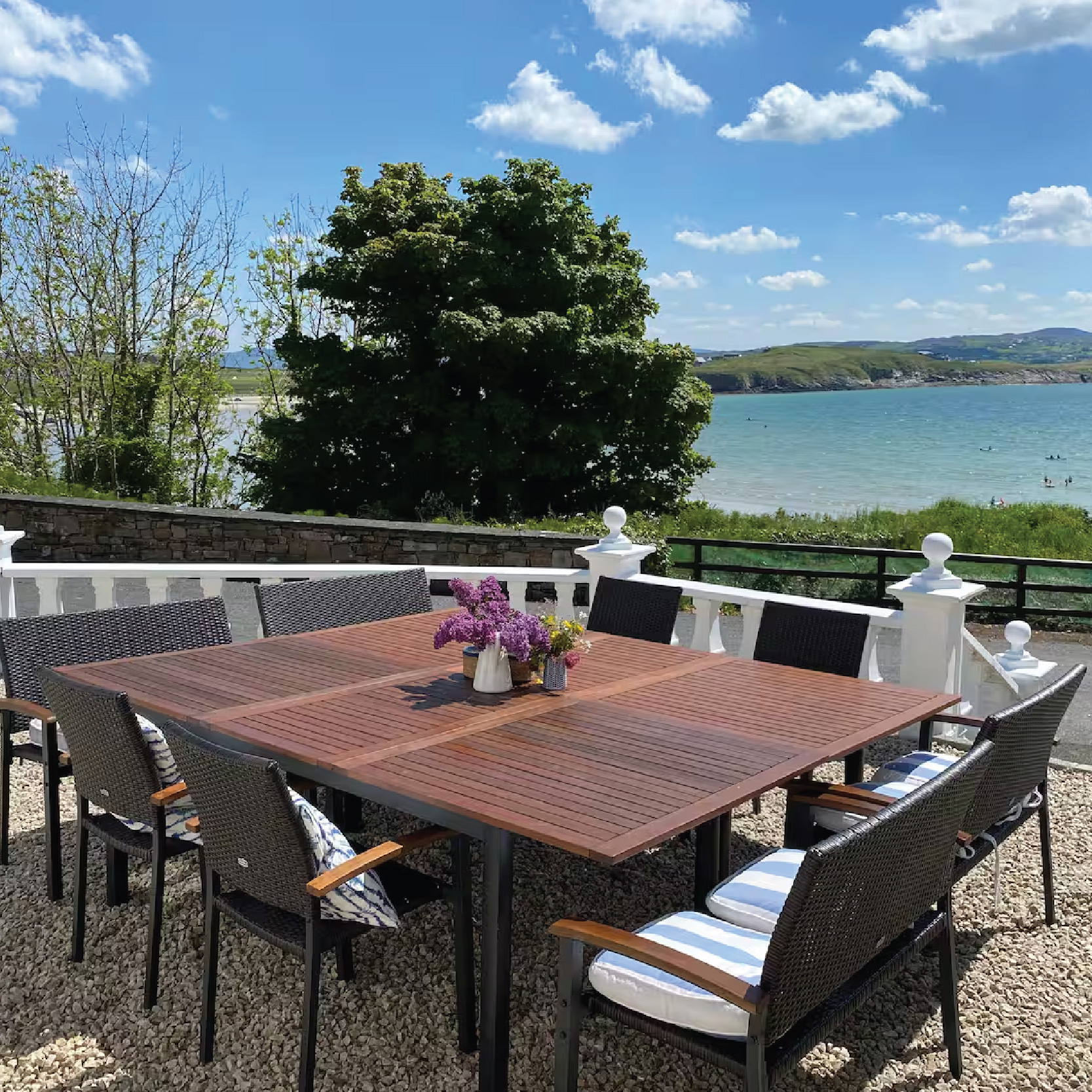 The house has been finished to an outstanding standard and is designed for relaxed, sociable living. It features seven generous bedrooms, including five doubles with en-suite bathrooms and two triple rooms sharing a family bathroom. The open-plan kitchen and dining area is the heart of the home, complete with a log burner, handmade wooden kitchen, large range cooker and dining table seating up to 16. A separate living room with sea views and a second log burner provides a cosy retreat, while the games room offers entertainment with a pool table, table tennis and TV. Additional features include a wetsuit and golf changing room with shower, laundry and boot rooms, and an outdoor terrace with BBQ and dining area, the perfect spot to enjoy alfresco meals while taking in the views across Sheephaven Bay.
